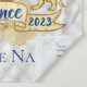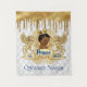 Adorable prince africain portant une couronne d'or sur une crête et une bannière de lion royal doré avec un fond à gouttes de paillettes dorées et à motif de diamants blancs. Texte « Prince » en bleu royal sur la bannière centrale et « établ. 2022 » à gauche et à droite. Personnalisez avec votre propre texte en bas. ©2022 Miss Sassy Party Designs