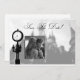 Classy noir et blanc enregistrer la carte d'invitation de date avec une photo d'un couple nouvellement marié, château et horloge avec les mots "sauver la date" et étiquette de adresse sur le dos complet avec char. Grande invitation à thème mariage Princesse.