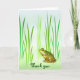 Cette carte de remerciements est composée d'une petite grenouille verte femelle avec un ventre jaune assis parmi les herbes de l'étang. Elle semble seule comme si elle attendait que son Prince Charming apparaisse.