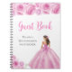 Ce livre d'hôtes de quinceanera présente une belle princesse dans une robe rose pâle aux arrangements floraux. C'est parfait pour une fête d'anniversaire de quinceanera.