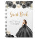 Ce livre d'hôtes en sweet sixteen présente une belle princesse dans une robe en boule noire aux arrangements floraux. C'est parfait pour une fête d'anniversaire en sweet sixteen.