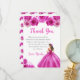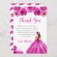 Ce carte de remerciements de sweet sixteen présente une belle princesse dans une robe à boule rose chaud avec des arrangements floraux. C'est parfait pour une fête d'anniversaire en sweet sixteen.
