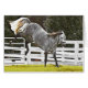 Un cheval gris pomme photographié à mi-coups sur un matin ensoleillé d'automne. Les pommes sont une variation de couleur que l'on voit le plus souvent sur les chevaux gris.