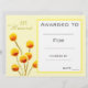 Un élégant prix de classe d'art moderne récompense avec le jaune mignon Billy Button natal fleurs australiennes aquarelle couleur jaune pour encourager un jeune étudiant en art. Vous pouvez écrire dans vos propres détails. Une excellente ressource pour n'importe quel type de professeur de classe.