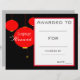 Un prix universitaire de classe scolaire décerné avec une image de thème de lanternes rouges chinoises, parfait pour encourager un jeune étudiant en mandarin. Vous pouvez écrire dans vos propres détails. Une excellente ressource pour n'importe quel type de professeur de classe. Thème noir et rouge