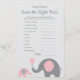 Notre baby shower à thème d'éléphant rose et gris Prix est le bon jeu liste 10 bébés essentiels et les invités essaient de deviner le coût de chaque article. Ce jeu est mieux joué avec un visuel de tous les articles - vous pouvez rassembler tous les articles dans un panier cadeau qui ferait un cadeau parfait pour la maman à être! Assurez-vous de conserver votre reçu pendant le magasinage afin que vous ayez la clé de réponse pour ce jeu. Si vous le souhaitez, vous pouvez facilement customiser la liste des articles avant d'ajouter le jeu à votre panier.