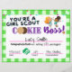 *Il s'agit d'une conception modifiable de texte. Cliquez sur modifier pour modifier le texte de l'exemple avant d'ajouter au panier.* Donnez aux membres de votre troupe une représentation tangible de leur dévouement et de leur dur labeur ! Que vous organisiez un classeur de vente de biscuits de scouts ou que vous récompensiez des réalisations exceptionnelles de scouts, ce certificat de réussite dans la vente de biscuits est un ajout délicieux à votre répertoire d'idées de scouts. Ces certificats ne reconnaissent pas seulement l'excellence, ils servent aussi de cadeaux scout mémorables pour les militaires.