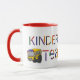 Une GRANDE Mug d'enseignant de maternelle avec du lettrage fait à partir de crayons et de crayons et un dessin d'un bus scolaire et d'une pomme. C'est un cadeau parfait pour n'importe quel enseignant de maternelle. D'autres objets avec des modèles similaires sont disponibles dans notre magasin à l'adresse suivante : www.zazzle.com/Teach1029
