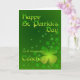 Une joyeuse carte de la Saint Patrick avec beaucoup de shamrocks verts pour un enseignant.