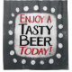 "Enjoy A Tasty Beer Today" est un design de texte mignon en gris avec du texte noir et rouge. Il est installé en forme d'accent blanc et de mignons pois blancs l'entourent.