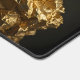 Un gros plan extrême de feuille d'or épaisse et écaillée de 24k, capturée dans un éclairage dur à source unique. La composition dramatique met en évidence des pics pointus, des vallées profondes et des textures riches, contrastant des reflets brillants avec des ombres profondes. Entièrement abstraite, cette image transforme le métal précieux en un paysage saisissant de lumière et de texture.