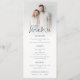 Program and Menu 2 Photo Overlay Wedding. A dual purpose design combining your reception timeline with your menu on the other side. An informal set typography in black for the main headings Menu and Reception timeline, complementing the rest of the text which you can easily personalise. Replace the sample photos on each side with your own favorites.