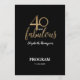 40th birthday programpersonalizedgold and black40 and fabulousbirthday partyitineraryschedulenamedatevenue