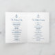 Programme de mariage bimensuel nautique avec ancre bleu marine et rayures vert menthe. Idéal pour les mariages et les événements côtiers de destination estivale.