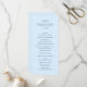 Programme de mariage traditionnel et élégant avec une mise en page minimaliste avec un monogramme en haut avec vos détails dans une police serif classique. Le thème de couleur est bleu ciel clair et peut être modifié en n'importe quelle couleur que vous choisissez dans l'outil d'édition de conception. Ce programme simple et minimal est parfait pour un mariage formel.