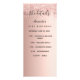 Programme de fête d'anniversaire, chronologie. Personnalisez et ajoutez le nom, l'âge, la date et les détails. arrière - plan à l'aspect faux métallique rose, décoré de gouttes. Lettres de couleur noire. Si vous avez beaucoup de texte à l'avant, vous pouvez réduire l'espacement des lignes. Retour : ajoutez une photo de la fille d'anniversaire, des faits amusants et des noms.