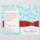 Ce programme mariage damassé bleu et blanc aqua de 8,5 po x 11 po est doté d'un ruban IMPRIMÉ rouge vif avec une broche à bijoux en cristal IMPRIMÉ. Il correspond au faire-part de mariage et aux autres éléments ci-dessous et est entièrement personnalisable. Il est conçu pour être plié au centre. ****VEUILLEZ NOTER que le papier de qualité supérieure est un stock de carte et ne se plie pas bien. Tout le texte est personnalisable. Les éléments correspondants existants dans cette conception sont présentés ci-dessous. Envoyez un courriel à niteowlstudio@gmail.com si vous avez besoin d'aide pour personnaliser ce service ou si vous avez des questions ou des demandes.
