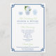 Le design du programme de mariage de la Chinoiserie intelligente comprend des pots de gingembre peints à l'aquarelle et une bordure de clé grecque.