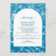 Un beau design côtier avec de l'eau bleue de la plage de l'océan et une arche blanche. Un design mariage parfait pour toute personne qui se marie en été, à la plage, au bord de la mer ou à l'occasion d'un mariage de destination. Un design moderne bleu marine avec vagues à thème. Un parcours de mariage de plage bleu océanique avec des éléments modernes. Des invitations de mariage et d'autres articles de papeterie sont également disponibles.