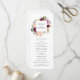 Un programme de mariage botanique d'automne personnalisable. Il présente des illustrations aquarelles de fleurs bordeaux, violettes, rouges et rousses avec eucalyptus et d'autres accents de verdure. Personnalisez en ajoutant des noms, une cérémonie de mariage et un message de remerciement. Ces programmes de mariage floraux d'automne sont parfaits pour les mariages d'automne.
