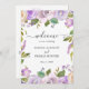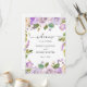 Programme de mariage fleuri violet avec une bordure de fleurs aquarellées dans les tons violet pastel, lavande, lilas et ivoire. À l'intérieur, vous trouverez le message "Bienvenue à notre mariage" ainsi que vos noms et votre date. Le dos a votre ordre de cérémonie, de mariage et message de remerciement. Ces programmes de mariage élégants sont parfaits pour un mariage de printemps ou d'été.