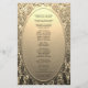 Ce programme de mariage élégant et magnifique présente un aspect or métallisé avec un fond damassé et conviendrait parfaitement à tout mariage ou événement.