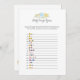 Un jeu amusant pour le baby shower est le jeu Baby emojis. Cette carte de jeu présente des fleurs bleues en haut. Au verso, un ours en peluche s'appuie sur un tonneau de miel en regardant une abeille au miel avec des modèles.