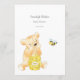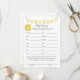 Un jeu amusant pour le baby shower est le jeu de langue Baby. Ce jeu comporte une bannière jaune en haut et un tonneau de miel. Au verso, un ours en peluche s'appuie sur un tonneau de miel en regardant une abeille au miel avec des modèles.