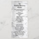 Des programmes de mariage rustiques et hauts avec arrière - plan d'écorce de bouleau. Thème noir et blanc avec texte de part et d'autre. Parfait pour les mariages en plein air, les mariages de grange ou le thème de la campagne. Ajoutez toutes les informations sur la cérémonie et la liste des fêtes de mariée au premier plan. Inclure le message de remerciement, en mémoire, ou les directions / adresse de la réception à l'arrière.