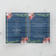 Un design magnifique avec arrière - plan de texture de grain bleu marine, roses vintages aux tons rose vif et bordeaux, verdure pendante encadrée d'un cadre doré élégant. Un programme mariage de bienvenue à la campagne avec des motifs floraux, du bois rustique, des accents dorés, idéal pour tous les mariages à thème. Des invitations de mariage et d'autres articles de papeterie sont également disponibles.
