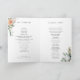 Conçus pour coordonner avec notre collection Boho Blooms, ces programmes de mariage pliés élégants comprennent un feuillage botanique vert sauge et des fleurs d'inspiration pastel désert en pêche, blanc et ivoire, disposées autour d'un élément central géométrique. Customisez le devant avec vos noms, l'emplacement du mariage et la date. Ajoutez à l'intérieur les détails de votre cérémonie et de votre fête de mariage, et personnalisez le dos avec un message personnalisé de remerciement à vos invités.