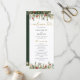 Boho Rustic Christmas Pine Botanique Lumières Vacances d'hiver Mariage de mariage Modèle du programme de mariage. Programme botanique à goutte bohème avec lumières élégantes et botaniques simples de pin rustique dans l'aquarelle imprimée à la main. La couleur verte de l'arrière - plan est magnifique pour les mariages de boho et les mariages de noël. Modèle de programme pour les fêtes et les mariages d'hiver.