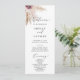 This boho pampas grass wedding program is perfect for a summer wedding. The floral watercolor design features bohemian burgundy and blush pink flowers with sprigs of neutral pampas grass and golden dried palm leaves. Include the name of the bride and groom, the wedding date and location, thank you message, order of service, bridal party and an optional "in loving memory" memorial.