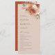 Boho Terracotta Dahlia Rose Floral Élégant Programme De Mariage Simple. Bouquet de style bohème invitation minimaliste avec fleurs brûlées orange et botaniques en aquarelle imprimée à la main. La couleur beige et terre cuite est magnifique pour les mariages boho dahlia et terre cuite. Modèle de programme pour les mariages du printemps, de l'été, de l'automne et de l'hiver.