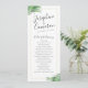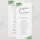Des feuilles de palmiers verts à l'aspect réaliste entourent une bordure géométrique dorée sur un programme de mariage simple moderne et élégant de destination de plage tropicale avec une touche minimaliste. Cliquez sur "customiser plus loin" pour modifier les polices, ou arranger le texte et la conception sur le modèle comme vous le souhaitez.
