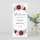 Elégant Rouge Bourgogne, Champagne ivoire terroir mariage à thème fleuri Carte programme avec élégant bouquet de Bourgogne, champagne ivoire rose pivoines et sauge vert eucalyptus feuilles. Veuillez me contacter pour toute aide sur la personnalisation ou si vous avez besoin d'un autre produit avec ce design.