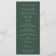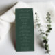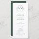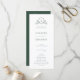 BRUNSWICK CREST, programme de mariage. Caractéristiques, élégante typographie verte et verdure botanique et crête fleurie sur le devant avec typographie blanche et couleur arrière - plan verte sur le dos.