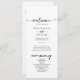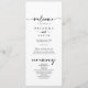 Ce programme de mariage moderne et élégant est parfait pour un mariage rustique. Le design sobre et élégant présente une typographie de script classique et sophistiquée en noir et blanc.