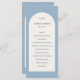 Programme de mariage moderne avec votre monogramme avec votre ordre de cérémonie et de mariage à l'intérieur d'une arche couleur ivoire sur un arrière - plan bleu poussiéreux. Ce design simple et élégant aux couleurs feutrées peut être parfait pour un mariage de printemps, d'été ou d'hiver.