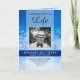 Célébration moderne Vie Funéraire Ciel bleu Programme Sur la couverture, une photo de votre être aimé avec leur nom et leurs années de vie. A l'intérieur, vous pouvez écrire la nécrologie et le programme. L'avant et l'intérieur sont dotés d'un arrière - plan bleu ciel. Au verso, vous pouvez ajouter des accusés de réception.