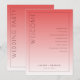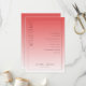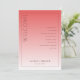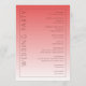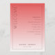 Ce programme de mariage présente un design minimaliste et élégant avec une mise en page verticale, divisé en deux sections par une transition de couleur en dégradé allant du rose corail profond à un rose pêche plus clair. Le côté gauche affiche bien en vue le mot "BIENVENUE" en caractères gras, majuscules et serif, tandis que la section de droite énumère les événements de la cérémonie dans un format structuré et centré, utilisant un espacement généreux pour une lisibilité optimale. Des espaces personnalisables permettent une personnalisation avec les noms et les dates en bas au centre, améliorant sa polyvalence. L'esthétique propre et moderne utilise efficacement l'espace négatif, créant une atmosphère sophistiquée et formelle adaptée à une occasion cérémonielle importante.