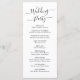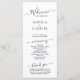 Élégant programme de mariage chic minimaliste est parfait pour un mariage minimal moderne. Toutes les informations sur la cérémonie du mariage et le nom de la fête de mariage indiqué sur ce programme. Design avec typographie/calligraphie en lettré noir et cursif sur un arrière - plan blanc, avec un look simple et propre. Y compris le nom de la mariée et du marié, la date et le lieu, l'ordre de service, message de remerciement, fête de mariage et un mémorial optionnel "en mémoire d'amour". Facile à customiser.