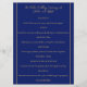 Dégustez vos invités avec cet élégant programme de cérémonie hindou mariage indien qui comprend un paon doré complexe sur un arrière - plan bleu profond. La couleur or n'est pas du papier peint, mais un pigment riche de couleur or et le charmant paon provient d'une couverture de livre antique. Changez facilement les détails à votre propre compte. Si vous le souhaitez, vous pouvez également modifier le style de police, la couleur, le texte et le placement. Si vous aimez le design mais souhaitez des changements, s'il vous plaît contactez-moi à Zazzle.