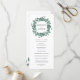 Élégant programme de mariage botanique avec vos noms encerclés par une couronne d'eucalyptus vert poussiéreux peint à la main et de feuillage. Personnalisez les programmes de mariage eucalyptus en ajoutant votre date et emplacement mariage, l'ordre des événements et la fête de mariage au dos. Conçu pour coordonner avec notre collection de mariages modernes Eucalyptus Green.