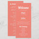 Programme de Cérémonie de Mariage de script rose corail moderne. Customisez avec vos noms, message de remerciement, objets de cérémonie au recto de la carte et noms de fête de mariage au verso. Veuillez envoyer un message au concepteur si vous avez besoin d'aide pour apporter des modifications.