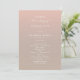 Simple Ombre Blush Pink & Beige Mariage programme de cérémonie. Cette carte d'ordre des services minimaliste moderne est simple classique et élégant avec un dégradé subtil et une jolie police de calligraphie de script signature avec queues. Montré dans la couleur rose et beige chic Ombre. Disponible en plusieurs options de couleur, ou n'hésitez pas à modifier les couleurs à partir de l'éditeur (cliquez sur customiser plus loin lors de la personnalisation). Pour en savoir plus, recherchez les collections mariages 2022 de Chic Paperie pour voir toutes les tendances design et couleurs mariages de cette année.