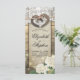 Rustic Country Style Programme de mariage Cartes en rack Modèles - Couple Old Horseshoe Coeur avec noeud de corde et dentelle blanche, Fleur d'Hydrangée, Lumières à cordes et tissu Burlap sur l'Arrière - plan de bois de grange ancienne. Un design parfait pour votre grand jour. Tous les styles de texte, couleurs, tailles peuvent être modifiés selon vos besoins !