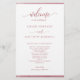 Élégant programme de mariage bordeaux avec des bandes d'aquarelle de couleur rose vif et bordeaux délicats encadrant les détails de votre programme de mariage. Possibilité de modifier et d'ajuster le texte en sélectionnant la personnaliser plus loin. Avant avec les détails de la cérémonie mariage, arrière avec les noms de la fête de mariage et message de remerciement pour vos invités ou tout autre texte que vous aimez, notre est simplement un exemple. Elégant, simple et gracieux. Initiales Une partie de notre collection "Mariage de monogrammes botaniques d'aquarelle de Bourgogne" avec une variété de produits de coordination disponibles, y compris le menu, les cartes de sièges de table, les numéros de table, les cartes de remerciements et plus encore. Visitez la collection entière avec ce lien : https://www.zazzle.com/collections/burgundy_watercolor_botanical_monogram_wedding-119217626426287645