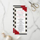 La collection chic moderne de luxe mariage de la collection dispose d'un arrière - plan classique rayé noir et blanc accentué par de belles roses rouges en rubis et un faux cadre en feuille d'or. Ces cartes de programme sont faciles à personnaliser et seront la commande parfaite de service pour tout mariage, douche nuptiale, fête d'anniversaire, fête de fiançailles ou toute autre occasion spéciale.