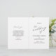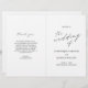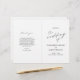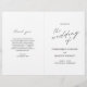 Programme de mariage économique simple avec "le mariage de" en calligraphie avec vos détails mariages en noir et blanc. L'intérieur a votre ordre de cérémonie et de mariage et l'arrière a votre message de remerciement personnalisé. Un design minimaliste avec typographie chic pour une touche élégante.